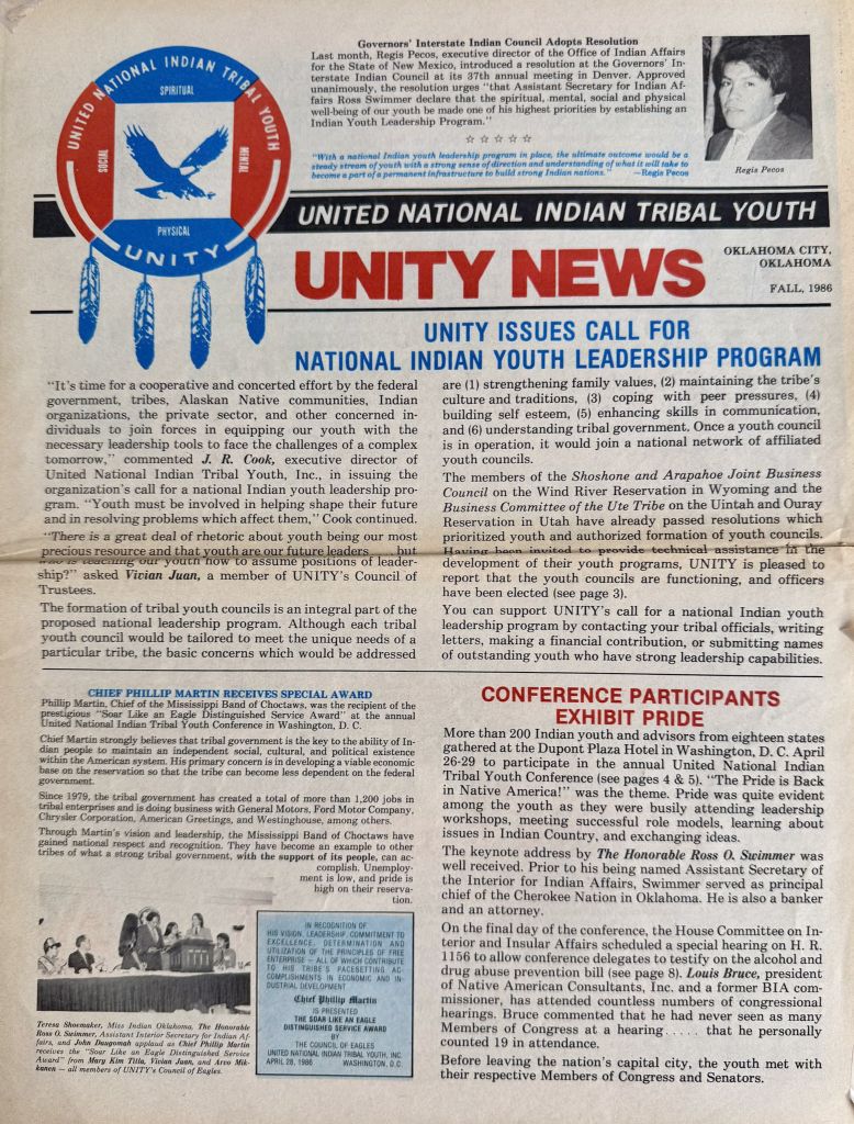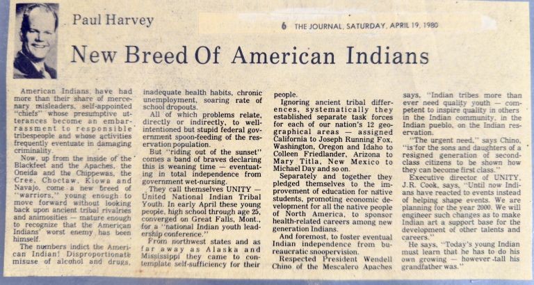 1980 — New Breed of American Indians: Paul Harvey broadcasted a story about UNITY on his national radio program entitled, ‘A New Breed of American Indians’ that recognized UNITY for its work with Native youth.