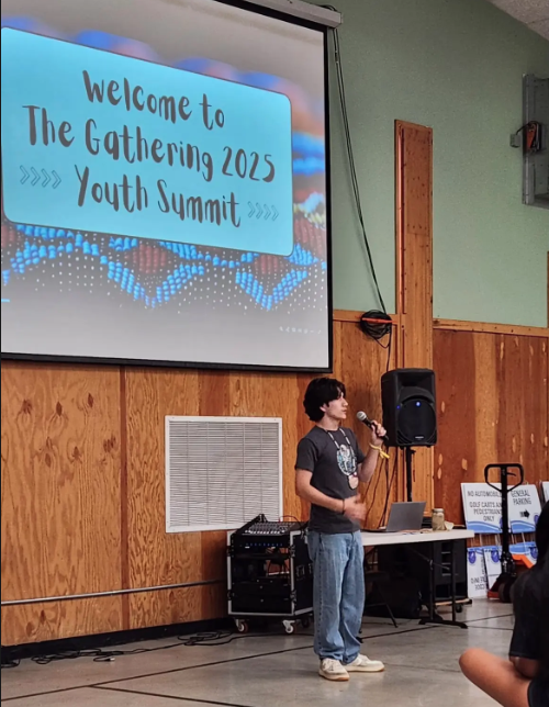 Gabriel also brought energy and connection to the Youth Summit by leading icebreakers that encouraged participation and relationship-building. In the Parade of Nations, he proudly carried the UNITY Midwest Flag alongside his youth council, then joined his Youth Council Drum Group to share songs with the community.