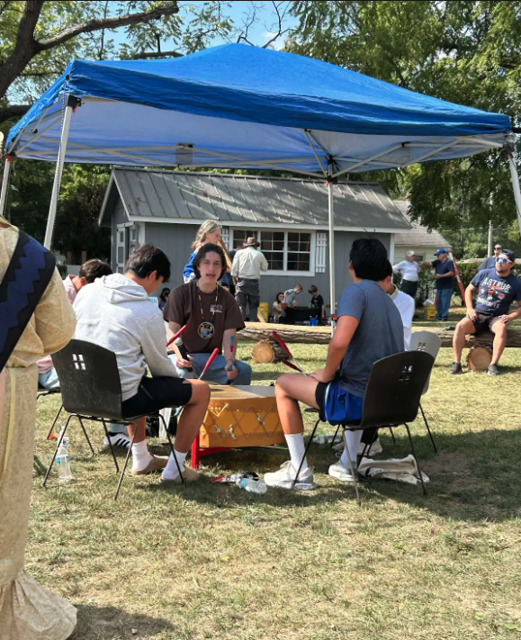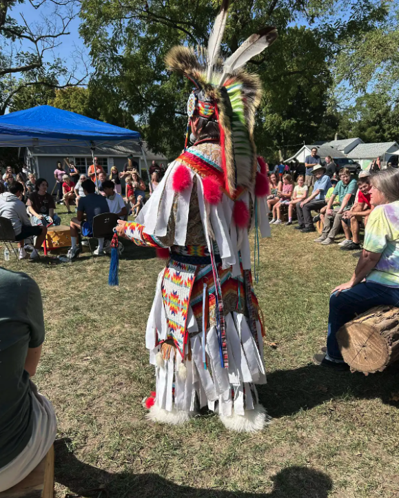 As a leader and mentor, Gabriel also guided his Youth Council drum group through a series of community presentations. The group traveled from their hometown of Dowagiac, Michigan, to Edwardsburg and Holland, sharing songs and stories at both a local gathering and the International Festival of Holland. With Gabriel as the lead singer, the group performed traditional songs while tribal relatives showcased their regalia and dance styles. Their presence reminded audiences of the living strength of Native culture — vibrant, proud, and rooted in community.