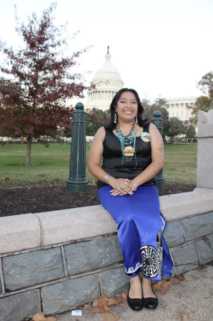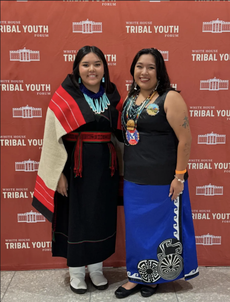 Evelyn’s commitment to advocacy and cultural preservation extended to the national stage as she participated in the White House Tribal Youth Forum in Washington, D.C. The forum brought together over 100 Native American youth from across the country to engage with federal officials on key issues impacting their communities, including food sovereignty, climate change, mental health, and missing and murdered Indigenous persons.