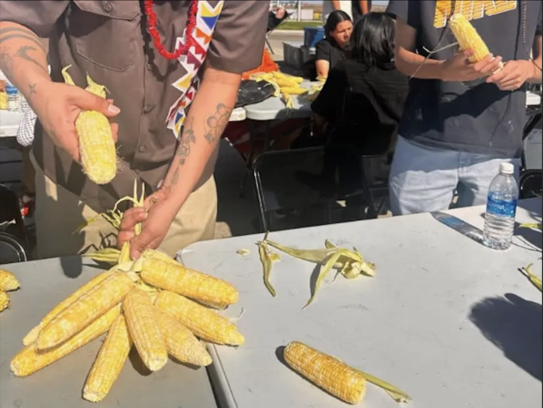 Later in the month, Weston, along with the Sanish Language class and the MHA Youth Council, hosted Mother Corn Day for White Shield’s K–12 students. Although Weston was unable to attend due to undergoing knee surgery, he emphasized the event’s great meaning to his community. “Mother Corn Day is important to me because it brings our youth together to practice our cultural ways,” he said. The day included a morning prayer, traditional games like corn tag, and lessons on how to braid corn for storage — a symbol of connection between generations and the teachings of the earth.