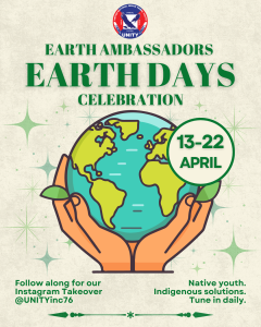 Follow @UNITYinc76 as Earth Ambassadors lead daily takeovers highlighting sustainability, community action, and cultural practices—from conservation and giving back to planting, reducing waste, and honoring our roots.