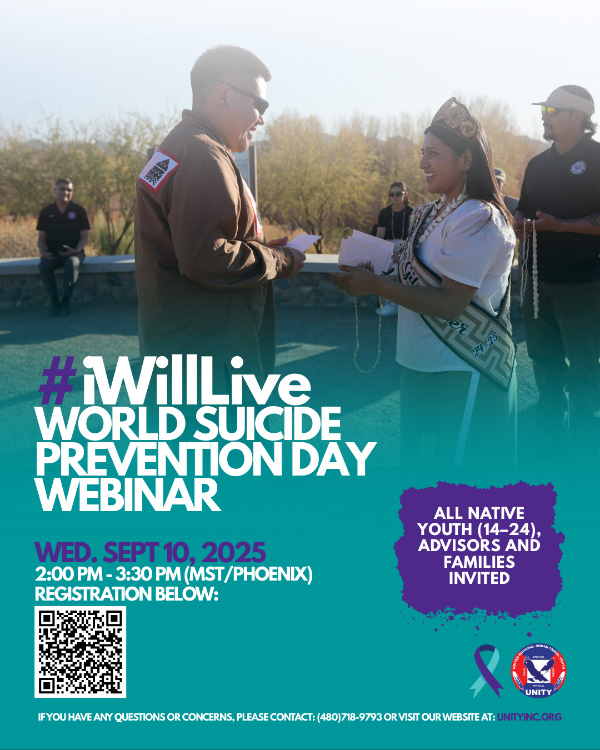 Join UNITY in spreading awareness with Native youth across Indian Country! Post Resources and stories of inspiration using the hashtag: #IwillLive