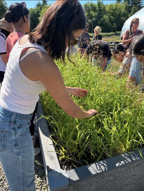 Her work has also bridged cultural traditions and policy advocacy. Meeting with Senator Murray of Washington, Tia discussed the urgent need for restoring wild salmon to the Columbia River Basin. Collaborations with the Tel-Tvm’ Siletz Farm, Siletz CARE Program, Siletz Culture Department, Siletz Natural Resources, Save Our Wild Salmon Collective, and NextGen Salmon Collective interns have allowed her to merge environmental stewardship, cultural revitalization, and community health in tangible ways. “Having the ability to promote wellness in my community is so important, as many struggle from health issues. Attending cultural ceremonies was also so healing.”