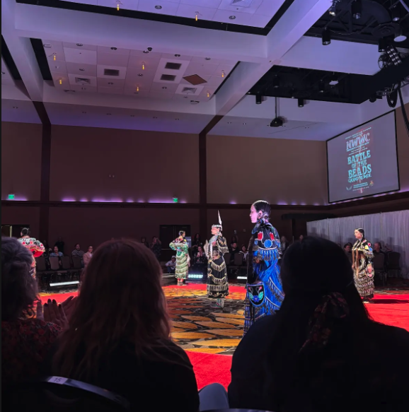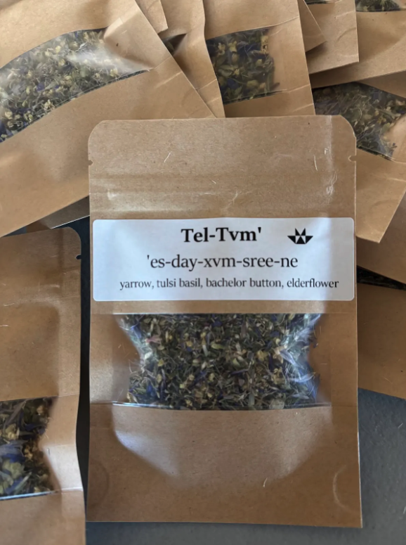 Tia even transformed her teachings into tangible gifts. Using the plant medicines her classes processed, she created ‘es-day-xvm-sree-ne (tea), which she shared at the Native Food Expo — blending ancestral knowledge with modern wellness. Her passion for culture and creativity also led her to the Northwest/West Coast Indigenous Fashion Show, where she celebrated Indigenous expression and design.