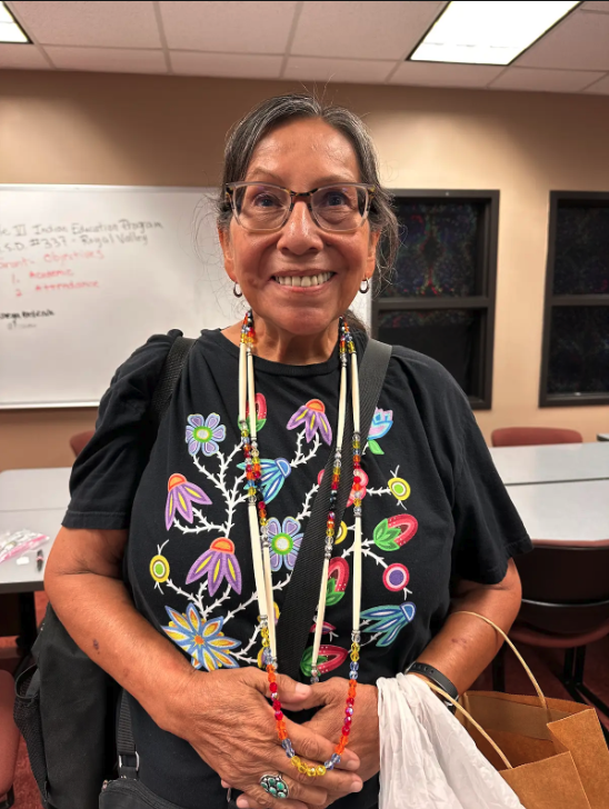 The Southern Plains Representative kicked off the season by participating in a Harvesters food drive, where he distributed free food to families, a small act with a big impact for those in need. At the Boys and Girls Club talent show, Victor stepped into the role of emcee, encouraging children from kindergarten through eighth grade to showcase their gifts in front of their community. Later, he learned to make traditional bone necklaces and gifted one to a respected elder who had served for years as a Title VI director. These moments, though seemingly simple, reflect his deep belief that leadership is about lifting others up and honoring those who have paved the way.