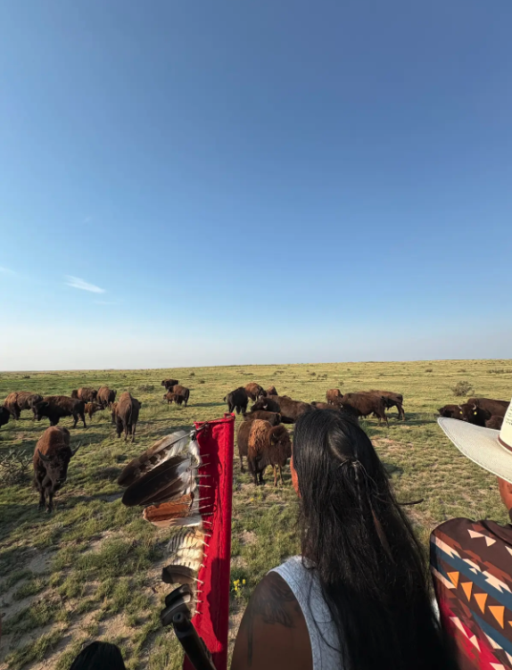 Upon returning home, Codie was invited to join a buffalo harvest with Southern Cheyenne relatives on traditional homelands. The group camped out overnight, beginning their day with a ceremony before riding out to find the herds. When the harvest was complete, every part of the animal was honored and shared, reminding all present of the reciprocal relationship between people and buffalo. Codie reflected, “It was an amazing experience getting to hunt in the traditional camping and hunting grounds of my ancestors, and maintain the connection to our Cheyenne relatives. I am forever thankful to our buffalo relatives and what they provide for us, and for the ways the old ones left for us.”